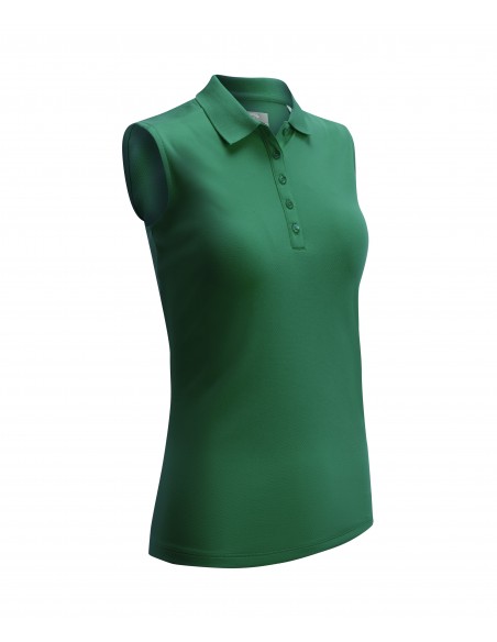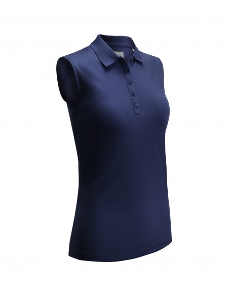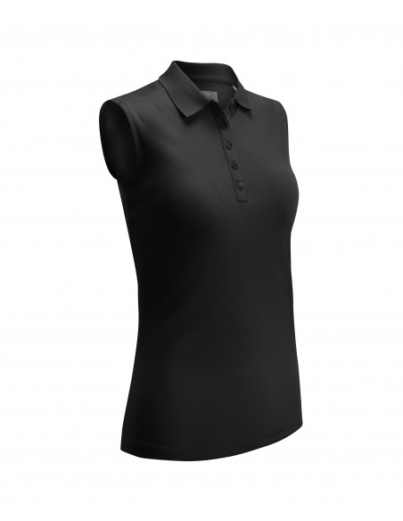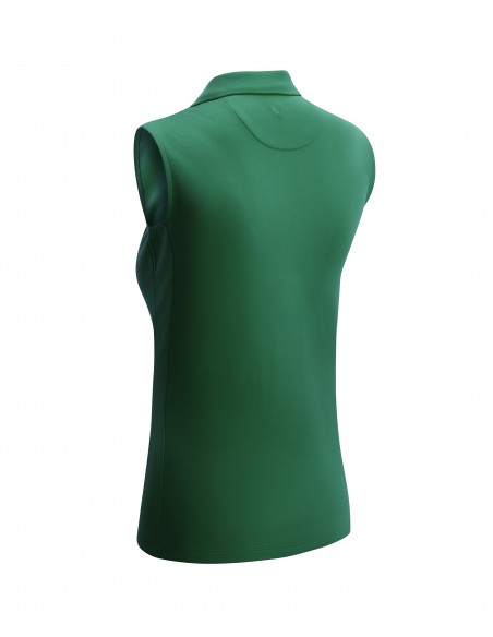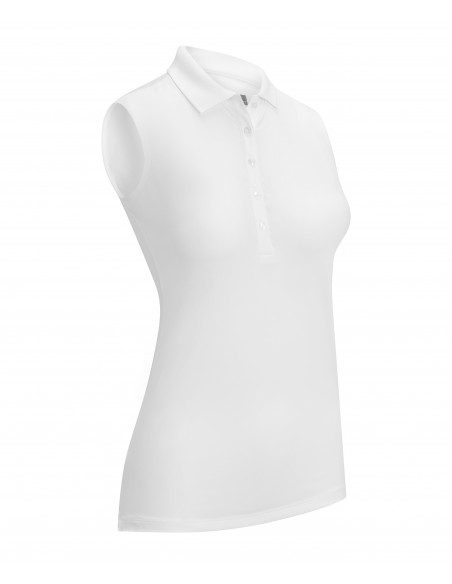 Our new Swing Tech sleeveless polo featuring moisture wicking and cooling technology to keep you dry and cool. Easy care machine washable. Featuring princess seams, a knit collar and 5 button placket. Callaway Chev logo embroidered tonally on the back of the neck. 165gsm